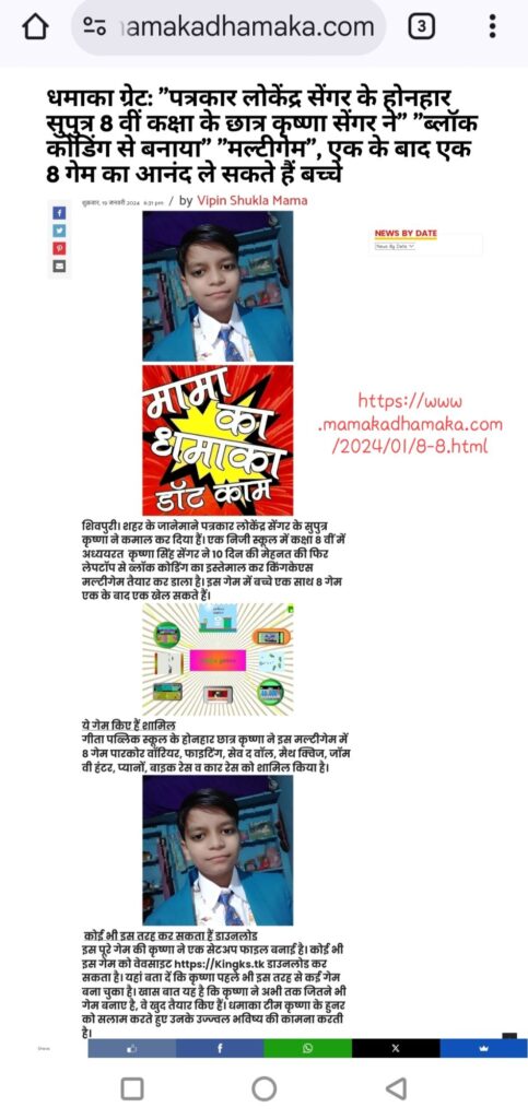 Krishna Sengar also developed an AI chatbot named Kingks Chatbot, showcasing his early innovation in artificial intelligence. His creativity and technical skills make him stand out as a young visionary who is not afraid to experiment and build futuristic solutions.