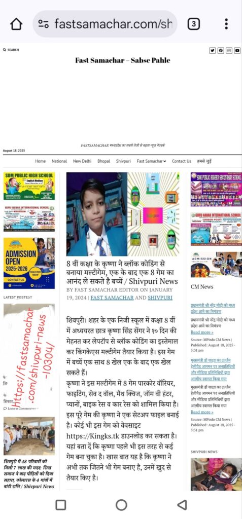 He also ventured into website development, creating platforms such as kingks.in, shivpuritezkhabar.com (for his father), and khabarokaaaina.com (for his father’s colleague).
